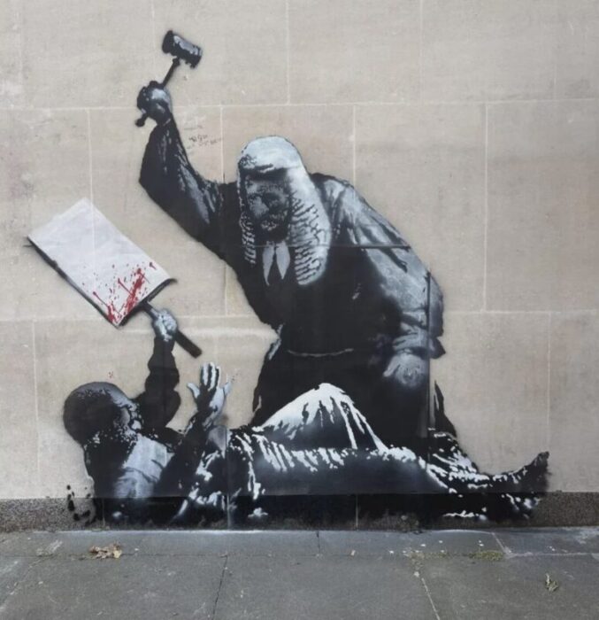 Naschrift twee. Alleen met creativiteit en schoonheid veranderen mensen zonder tanks en geweren de wereld. Nooit met geweld. En als zeker niet met haar zwakzinnige broertje, vandalisme.